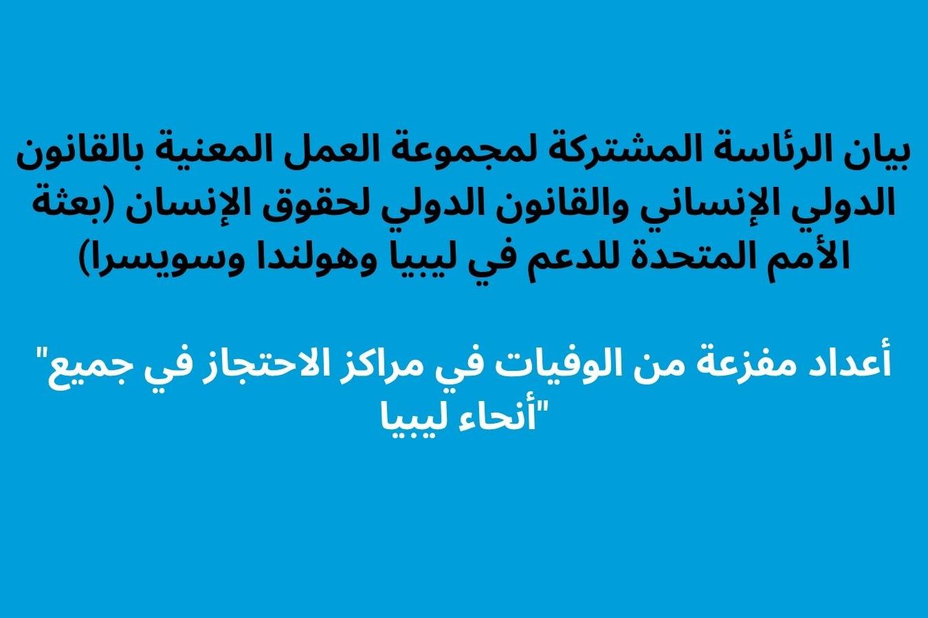 طرابلس - تُعرب الرئاسة المشتركة لمجموعة العمل المعنية بالقانون الدولي الإنساني والقانون الدولي لحقوق الإنسان المنبثقة عن لجنة المتابعة الدولية بشأن ليبيا ضمن عملية برلين – والتي تضم هولندا وسويسرا وبعثة الأمم المتحدة للدعم في…