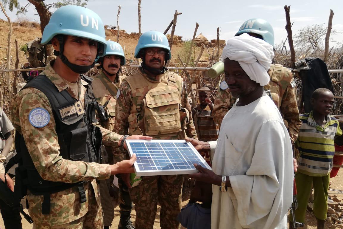 14 آذار 2019UNAMIDحفظة السلام باليوناميد يسلمِّون نظاماً للطاقة الشمسية إلى النازحين في سورتوني، شمال دارفور