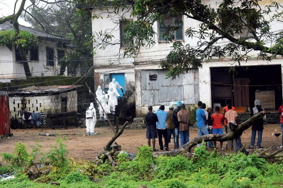 A Liberian Ministry of Health worker in Monrovia sprays the soles of a colleague’s shoes at an Ebola Isolation Clinic as they leave with blood specimens for testing. Photo: Staton Winter | UNMIL | 11 Jul 14 On 16 August 2014…