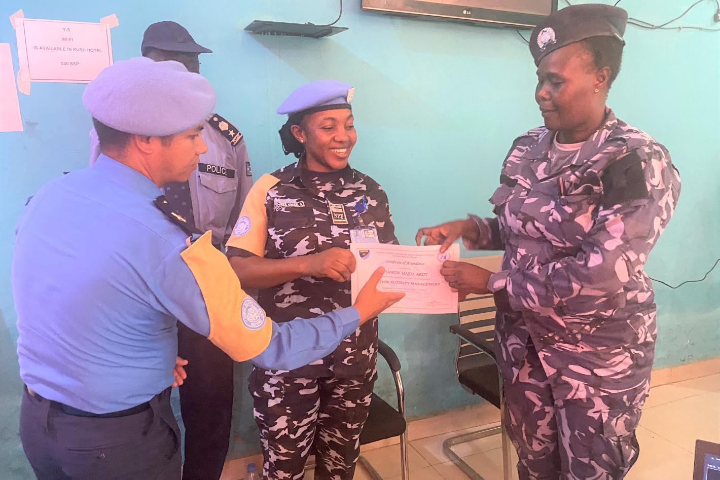 Some 30 South Sudanese police officers, including five women, participated in a three-day workshop hosted by UNPOL in a three-day training on elections security management. Photo by Emmanuel Kele/UNMISS. NORTHERN BAHR EL…