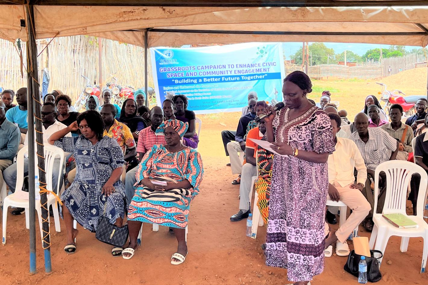 Residents of Hai Baraka on the outskirts of Juba expressed frustration and hope in equal measures at an UNMISS event organized to discuss the country’s political developments. Photo by Blessings Samuel Phumisa/UNMISS. JUBA -…