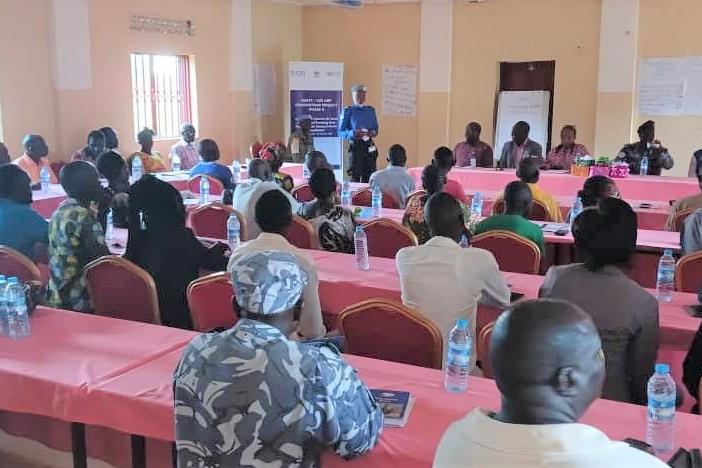 National police officers and members of the Police Community Relations Committee in Yei took part in a five-day training organized by UNMISS to enhance their understanding of community policing. Photo by Elizabeth Mpimbaza…