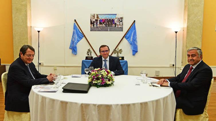 The Special Adviser of the Secretary-General (SASG) on Cyprus, Mr. Espen Barth Eide, hosted a dinner for the Greek Cypriot leader, Mr. Nicos Anastasiades and the Turkish Cypriot leader, Mr. Mustafa Akıncı, at the historic Ledra Palace Hotel on 2 April 2017. Earlier that evening, SASG Eide and Deputy SASG Ms. Elizabeth Spehar met Cypriots from both communities who converged outside the venue of the dinner to urge the leaders to continue their efforts towards a building peaceful future for the island. Members of the gathering presented a petition to DSASG Spehar, who received it on behalf of the leaders.