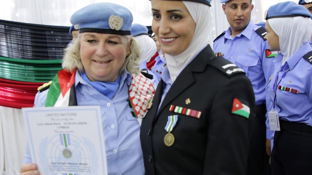 It takes a strong woman, determined to make a difference, to leave two children and family behind to become a peacekeeper serving with the United Nations Mission in South Sudan (UNMISS). Fortunately for everyone involved, Ayat Harb from Jordan is exactly that.“It is clear to me that women are necessary for peace operations to be successful,” she said when we met her, with a shiny UN medal pinned to her chest.Ayat did not receive it to mark International Women’s Day. She is one of the 50 Jordanian police officers, half of them women, who have just been awarded medals for a job well done serving with the peacekeeping mission. Together, they have spent a year building the capacity of South Sudanese police colleagues, patrolling, and doing their part to uphold the rule of law.“Witnessing hunger and poverty is distressing, I won’t lie. At the same time, many of the most vulnerable persons I come across are women, and their children, and in South Sudan many of them much prefer to interact with and talk to other women,” Ayat reflects.Being Jordanian and having been a language teacher for seven years, Ayat Harb has greatly enjoyed the great advantage of speaking Arabic, a version of which is widely used in this part of Africa. Learning basic phrases in other local languages, she says, has also made it easier for her to do her job.Deciding to become a Blue Helmet far away from home was harder, however. It took a bit of convincing by Jordanian police colleagues who had already served to make the leap of faith.“My family was definitely concerned about my deployment, but I could tell from others who have been away on similar tour of duties that it would be an invaluable experience that I wouldn’t want to be without. So far, I have not had any regrets.”Considering the tragic accident that caused her beloved sister’s death, while Ayat was in Aweil, South Sudan, she would have been forgiven for having had them. Instead, she chose to turn part of her grief into something productive.“My sister’s passing became my motivation to remain strong and work even harder, to honour her memory. She would have liked that.”