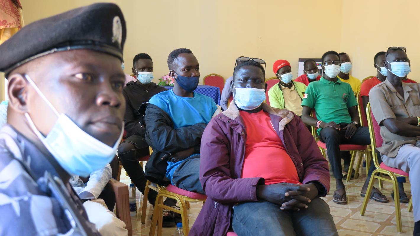 UNPOL officers in Aweil recently facilitated a road safety training for some 25 motorcycle taxi or boda boda drivers. Photo by Emmanuel Kele/UNMISS.