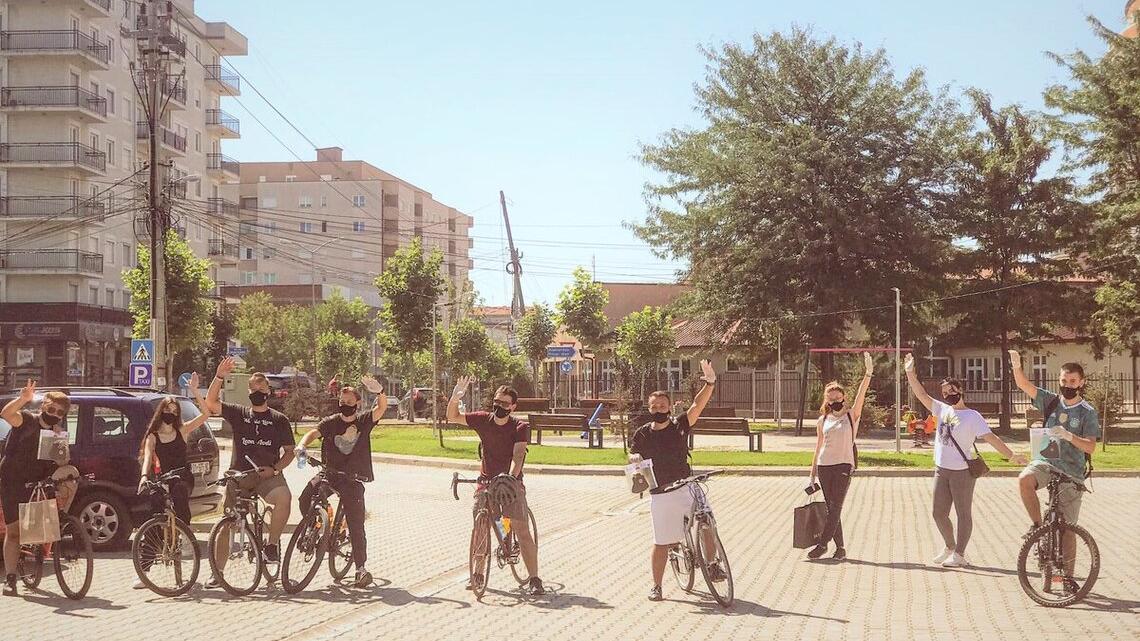 Young cyclists delivered more than 600 reusable masks to 200 Albanian, Serbian, Roma and Ashkali families in Lipjan/Lipljan with UNMIK support.