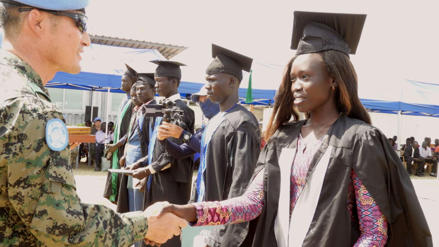 This week 69 students graduated from the Bor vocational centre created by the South Korean contingent serving the United Nations Mission in South Sudan.