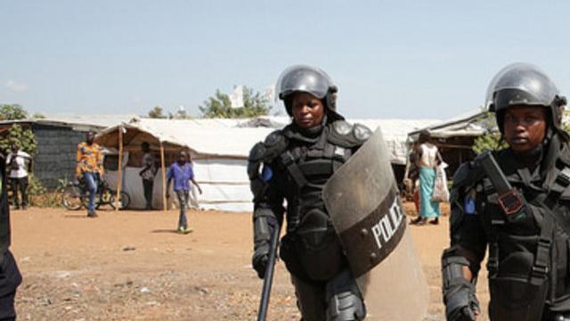 Wearing heavy black vests and padding, the female members of the Rwandan Formed Police Unit swelter under the hot Juba sun as they prepare for their entry to the nearby United Nations Protection site.