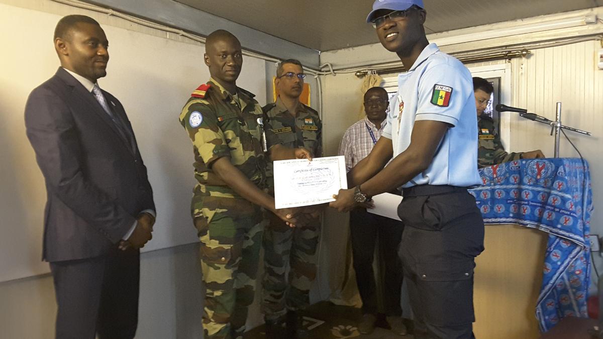 Patent grant to peacekeepers as part of training in the fight against HIV. Photo MONUSCO/Joseph Tabung Banah