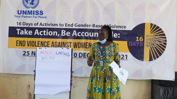 As such, the ongoing 16 Days of Activism provided UNMISS a platform to convene and connect with local communities through a series of trust-building activities which included sports and roundtable discussions on eliminating all forms of violence against women.