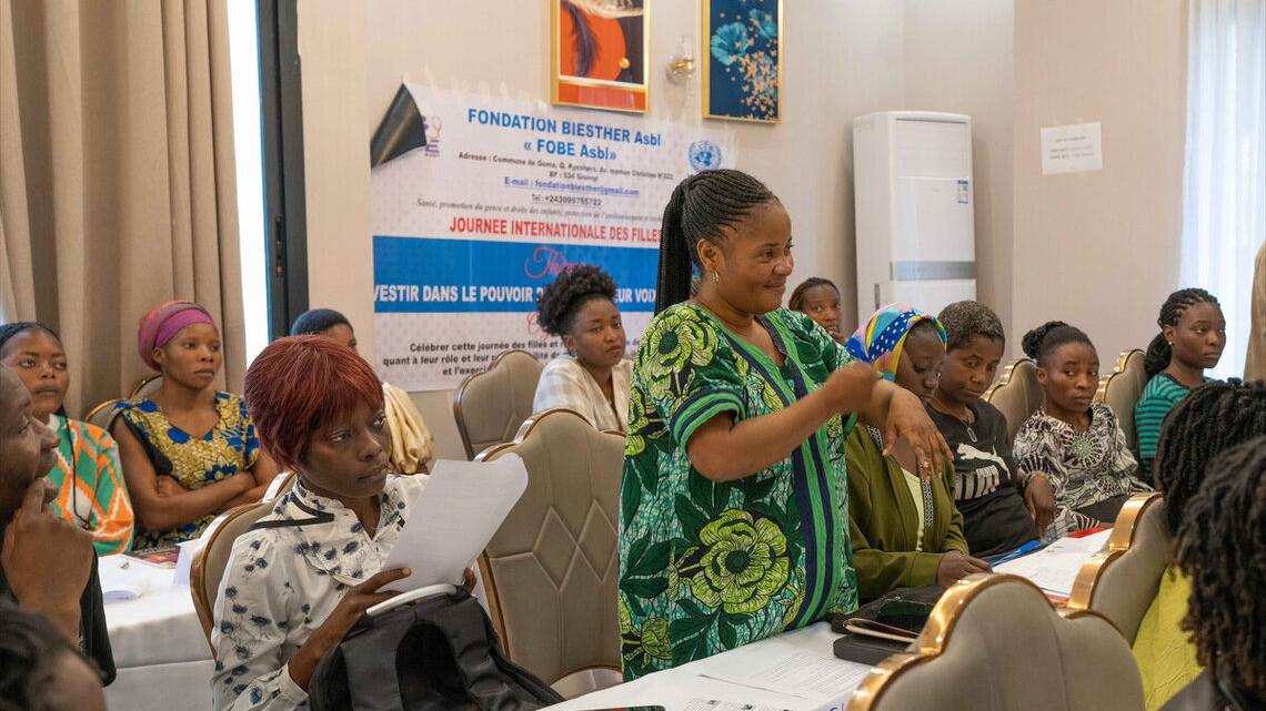The International Day of the Girl was marked on 14 October in Goma by the BI-ESTHER Foundation, with support from MONUSCO’s Gender Section. Around fifty young girls from various local organizations took part in a workshop focused on their rights, their role in peacebuilding, and efforts to end gender-based violence.
