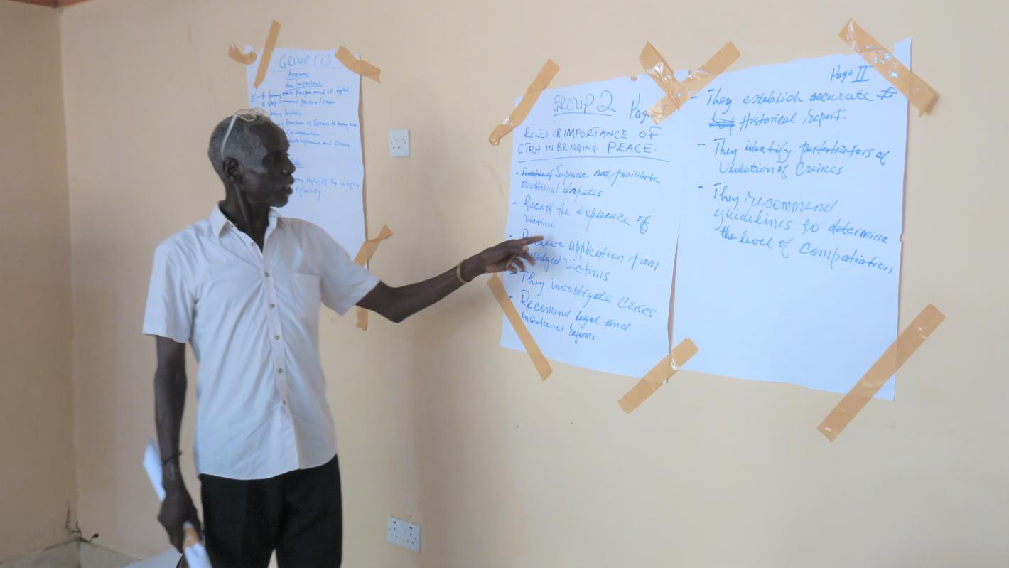 At a two-day workshop in Nimule, Eastern Equatoria, 40 community leaders and civil society representatives were sensitized on key transitional justice provisions contained within the Revitalized Peace Agreement. Photo by Moses Yakudu/UNMISS