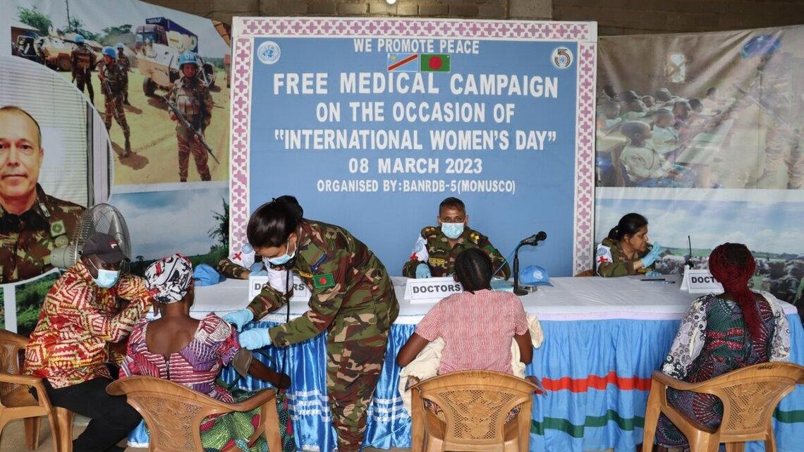 In Bunia, on 8 March 2023, peacekeepers from MONUSCO's Bangladeshi contingent organized a free medical consultation at Ndromo camp (Ituri). Photos MONUSCO / Lilianne Nyatcha
