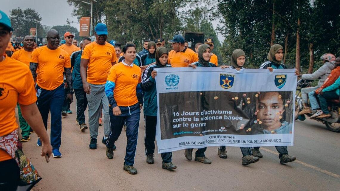 On December 6, MONUSCO military, civilian and police personnel, Congolese National Police officers and non-governmental organizations marched nearly 3.5 kilometers from Bunia airport to the Ndoromo military camp. Leading the procession, the MONUSCO head of office in Ituri and the North Sector commander, dressed in orange polo shirts, held up banners bearing strong messages: "No excuse for sexual violence." The initiative aimed to raise public awareness and mobilize the residents of Bunia to end these acts of violence that shatter lives, devastate families, and compromise peace.