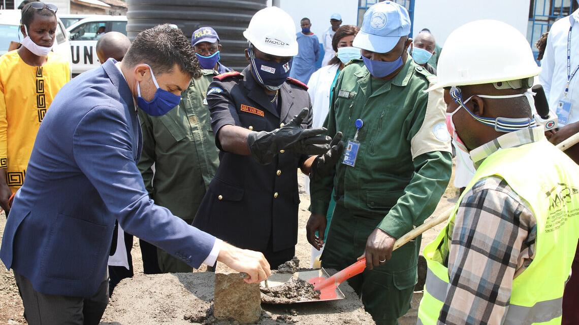 On July 29, 2020, Omar Aboud, chief of MONUSCO/Goma Petit Nord office, and General Aba Van Ang, the provincial commissioner of the Congolese national police in North-Kivu, jointly laid the foundation stone for the construction and rehabilitation of the police health centre in North-Kivu.