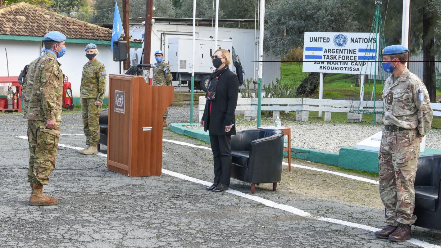 135 UN peacekeepers were honoured for their service for peace in Cyprus at UNFICYP’s winter medal parade which took place on 16 and 17 December. The Special Representative of Secretary General and Head of Mission, Ms. Elizabeth Spehar, praised the peacekeepers for playing a vital role in implementing UNFICYP’s mandate on the island.