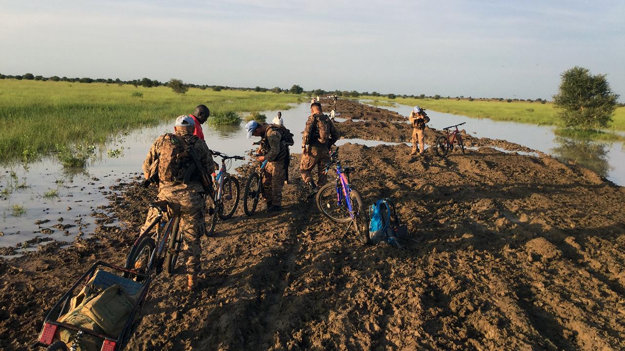 Braving the quagmires left in the wake of the floods, Mongolian peacekeepers and civilian staff from the United Nations Mission in South Sudan (UNMISS) this week mounted bicycles and pedaled through the mud in order to assess the security situation of key routes leading to hard-to-reach areas such as Mankien and Man-nyethiang, both part of the Bong cantonment sites.