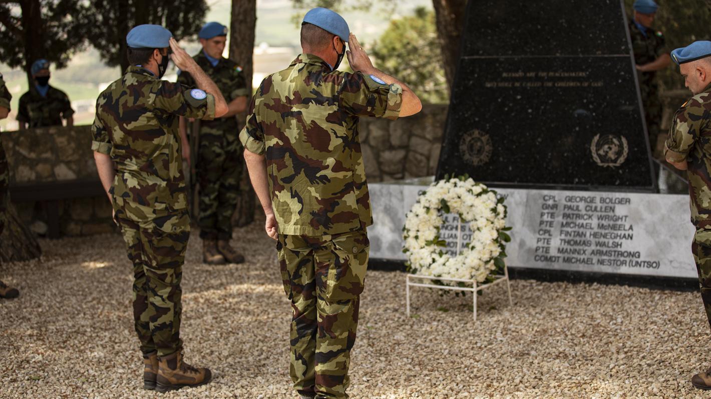 UNIFIL Irish peacekeepers yesterday paid respects to five Irish Defence Forces personnel who lost their lives while serving for peace with the UN peacekeeping mission in south Lebanon, all in the month of April, in the 1980s.