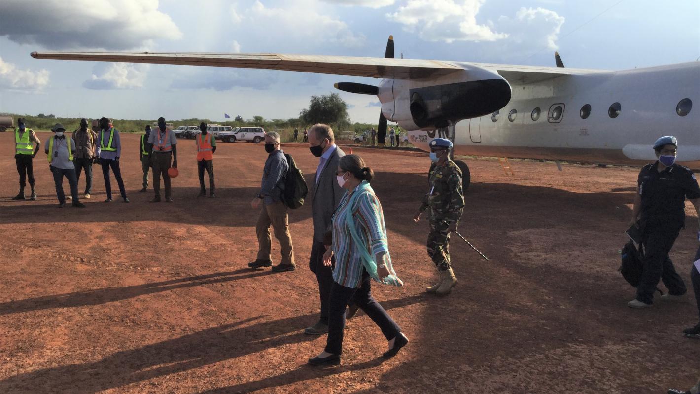From 14-16 October 2020, the Special Representative of the UN Secretary-General and Head of UNMISS, David Shearer, visited Bentiu and Malakal for the first time since the coronavirus-related lockdown in South Sudan. SRSG Shearer met with representatives of displaced communities, state officials and humanitarian partners.