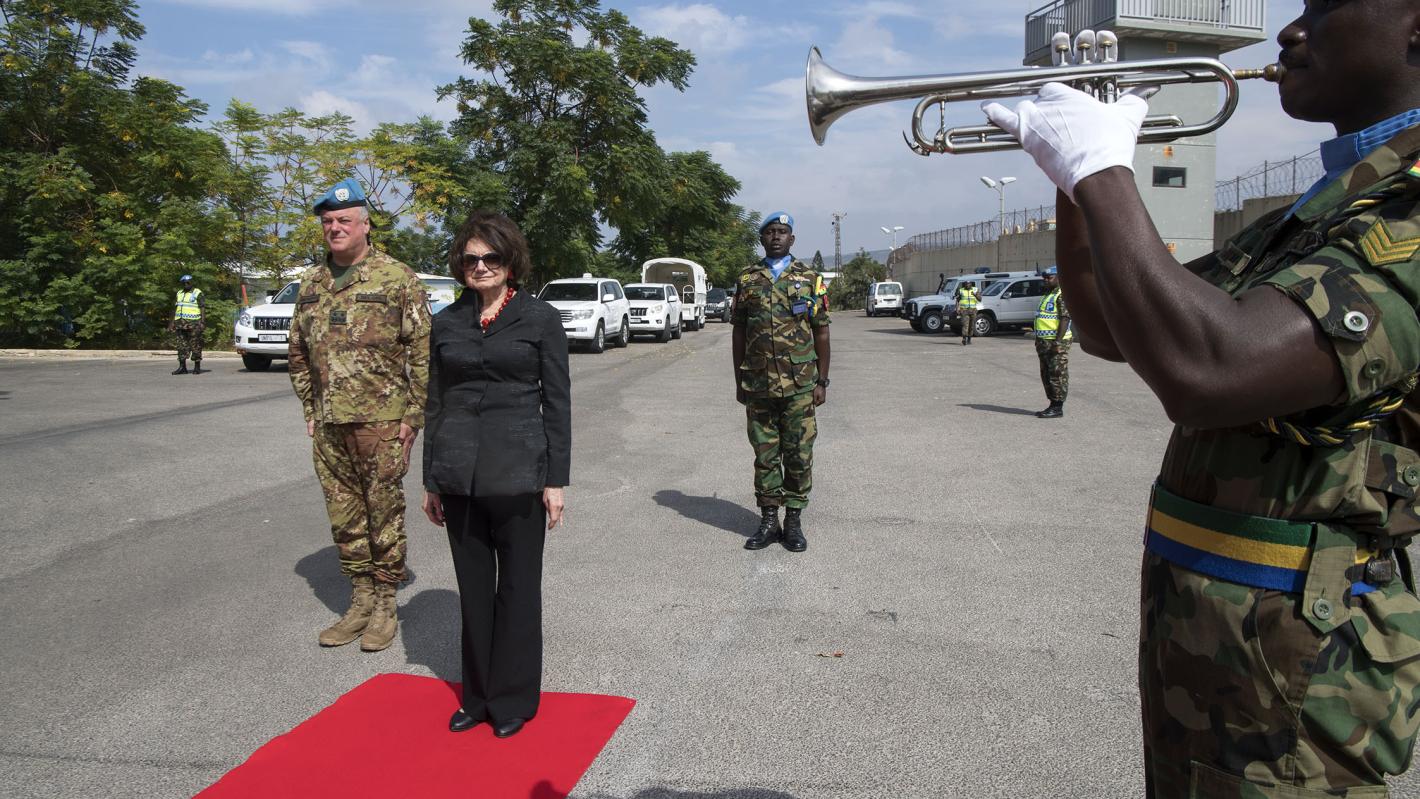 The United Nations Under-Secretary-General for Political and Peacebuilding Affairs, Rosemary DiCarlo, today paid a visit to the UNIFIL Headquarters in Naqoura, south Lebanon, and toured the Mission’s area of operations in order to see first-hand the work of UNIFIL in maintaining the cessation of hostilities and calm along the Blue Line.
