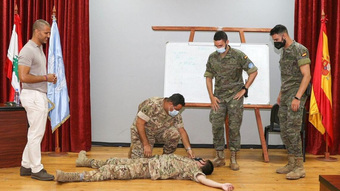Spanish doctors from a UNIFIL Hospital taught the participants, which included nine LAF soldiers and 20 UNIFIL personnel, about the preparation and usage of first aid kits in various combat situations.