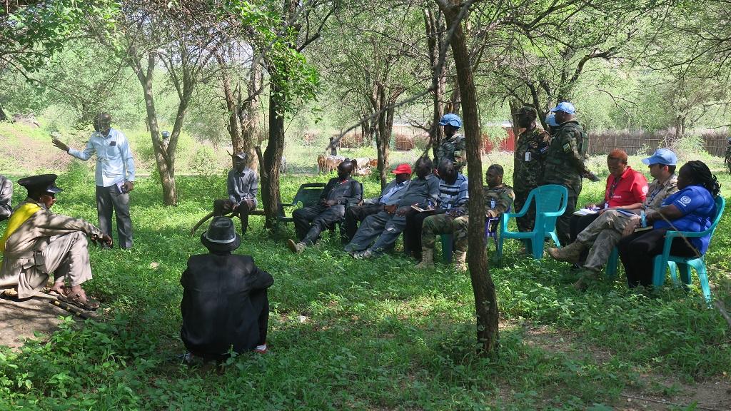 “I urge you, the chiefs, to carry the message of peace to the youth, requesting them to shun violence, because conflict hinders peace and development,” said Francis Shuei Dieu, a Civil Affairs Officer serving with the peacekeeping mission.
