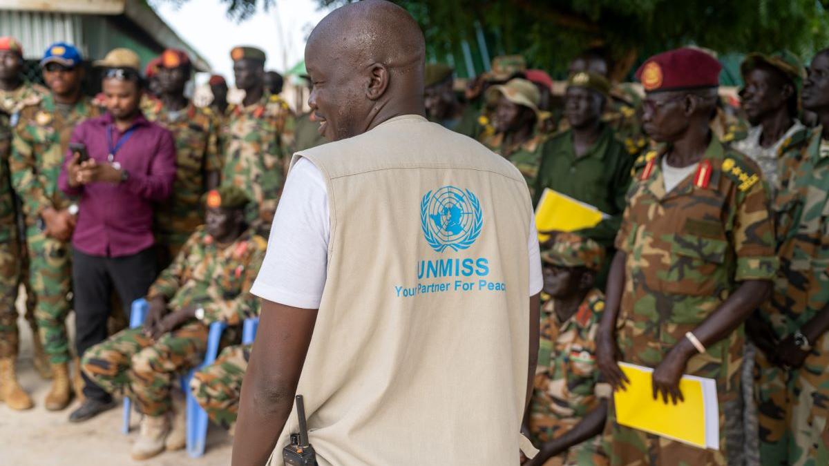 UNITY / RUWENG – "No matter which faction you are a part of, we are one South Sudanese. We must reunite to build our nation.”That was the message from Brigadier General Liep Bol Lam, a senior member of South Sudan’s security forces, at a training facilitated by the United Nations Mission in South Sudan (UNMISS) to enhance protection of civilians.The program brought together 600 men and women, including senior officers, across various locations in both Unity State and the Ruweng Administrative Area (RAA), to establish a unified front amongst different factions.The training sessions focused on effectively protecting civilians and conducting awareness campaigns within their respective barracks and outposts. This initiative marked the first joint training between opposing forces in the region since forced relocations of factions from Bentiu in 2023.Cephus Diggs, the representative for the Protection, Transition and Reintegration team at UNMISS’ Bentiu Field Office, highlighted why it is the government forces that must lead the protection of their people. "Ensuring the safety and well-being of citizens is the duty of governments and their security forces. It is essential that our forces lead by example, upholding human rights and providing unwavering protection to all civilians," he said.The program also provided a platform for discussing the return and reintegration of displaced people, a critical aspect of stabilizing the region. As South Sudan unifies the country’s armed groups, according to the Revitalized Agreement on the Resolution of the Conflict in the Republic of South Sudan, adopting best practices for civilian protection is crucial.