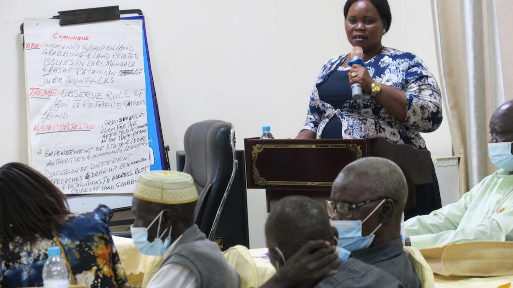 The man spoke at a forum organized by Central Equatoria State’s committee in charge of resolving incidents of land-grabbing. The event, attended by a total of 48 representatives of youth, women, elders, civil society organizations and other groups in the districts of Rajaf, Luri and Mangala, was funded by the United Nations Mission in South Sudan and facilitated by its Civil Affairs Division.