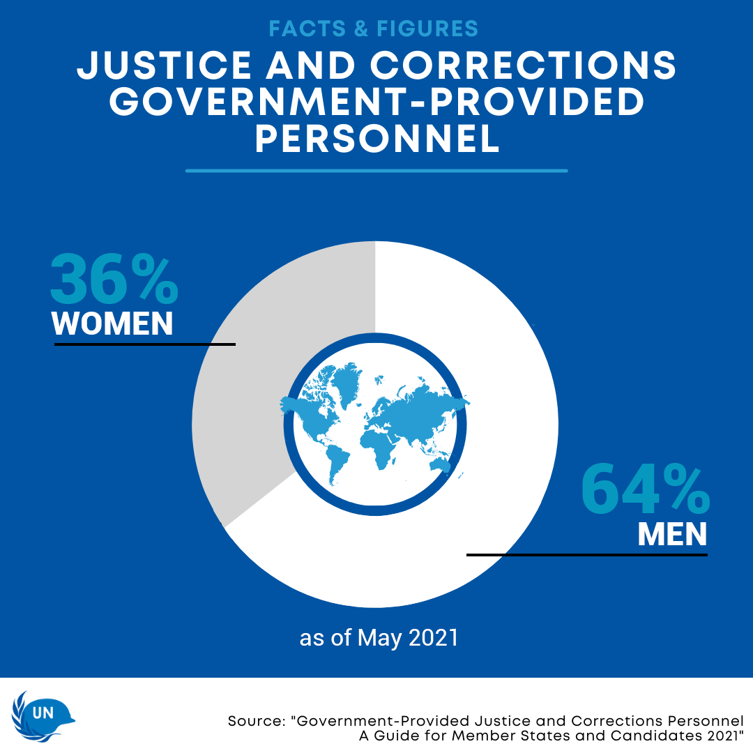 The 2018 Department of Peace Operation’s Uniformed Gender Parity Strategy sets out concrete steps to increase the meaningful participation of women in peace operations, including the number of women officers serving as justice and correction GPP. The Strategy's 2021 target of 29% has been exceeded, with women representing 36% of all justice and corrections GPP deployed to United Nations peace operations as of May 2021. To further increase the proportion of women GPP, the DPO Justice and Corrections Service: