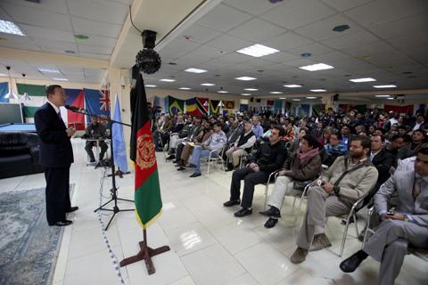 2 November 2009 - United Nations Secretary-General Ban Ki-moon met UN staff in Kabul today to express his solidarity following the attack on a guesthouse which killed five UN colleagues. Mr Ban also extended his support and…