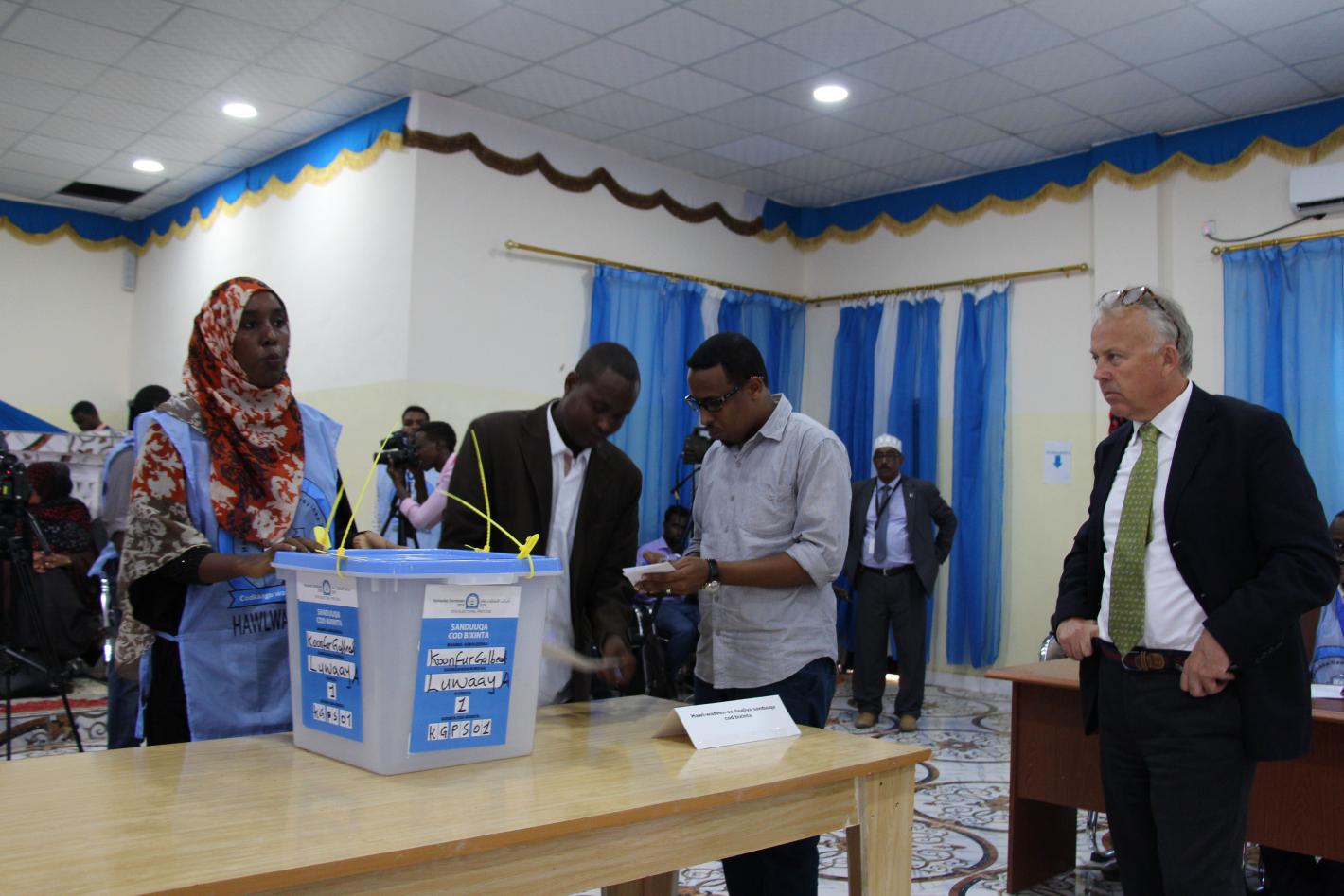 The Special Representative of the UN Secretary-General (SRSG) for Somalia Michael Keating today visited the electoral center in Baidoa, the administrative capital of South West state, and observed voting for a seat in the…