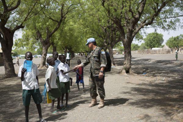 Mary Robinson (centre right), Special Envoy of the Secretary-General for the Great Lakes Region, is greeted by children during her visit to Kiwanja, North Kivu Province, in the Democratic Republic of the Congo (DRC). 29…