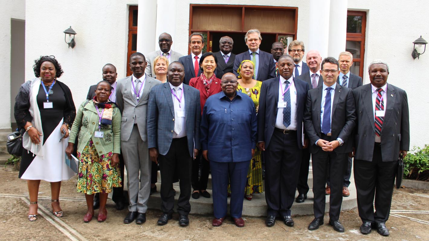 Group photo of Facilitator Benjamin Mkapa (centre), aides and stakeholders at Arusha Inter-Burundi talks, October 2018. UN Photo/Kassimi Bamba