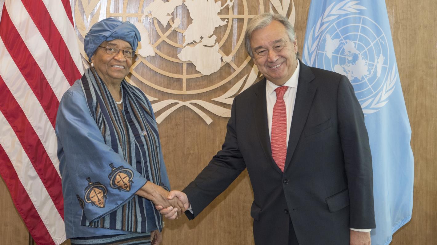 (ARCHIVES)Secretary-General António Guterres (right) meets with Ellen Johnson Sirleaf, President of the Republic of Liberia. © UN Photo/Eskinder Debebe 21 September 2017 UNMIL Public Information Office has the honour to…