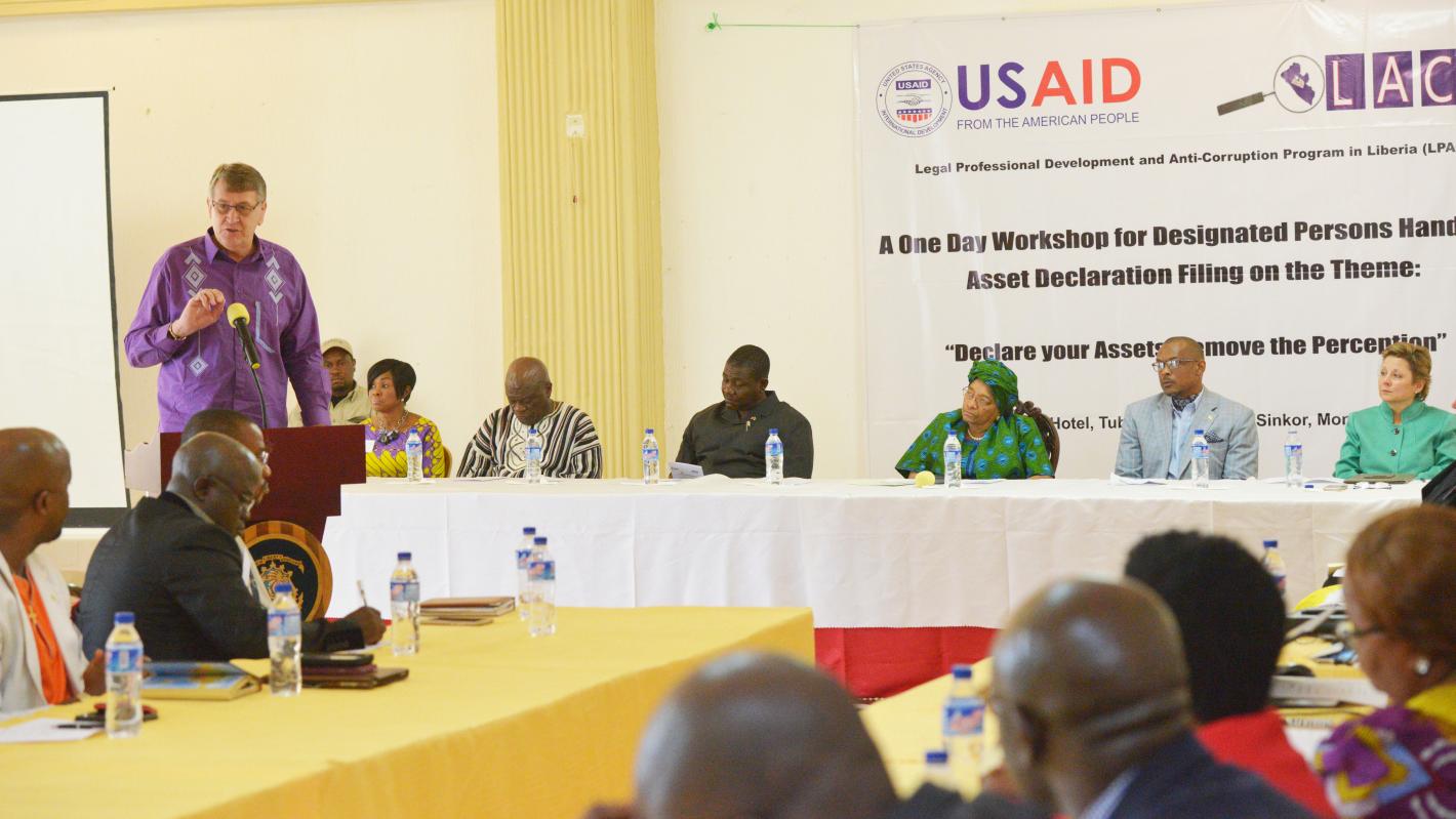 UNMIL DSRSG Vrey joins President Sirleaf at an assets declaration workshop