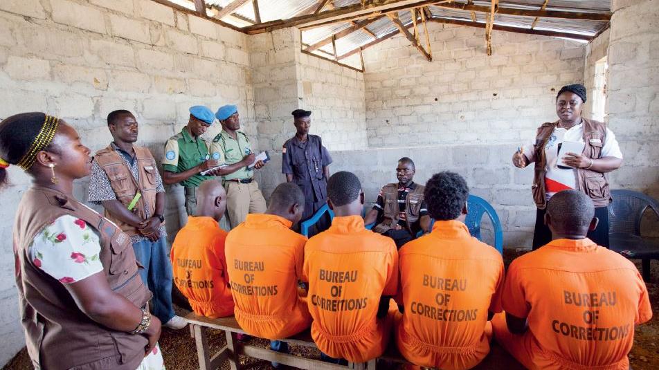 Prison inmates attend a meeting with UNMIL personnel at the Kakata Central Prison, Margibi County. Photo: Staton Winter | UNMIL | 14 June 12 The Principal Rule of Law Officer manages the justice, corrections and security…