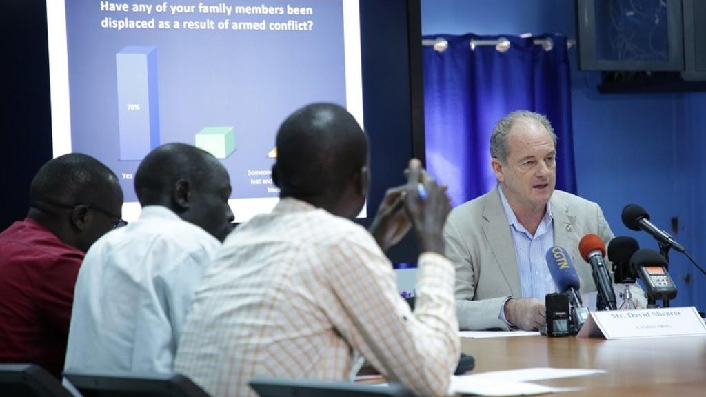 UNMISS chief David Shearer presenting encouraging results of a perception survey at a press conference in Juba. A new public opinion survey has found that 89 percent of South Sudanese believe that it is likely that there will…