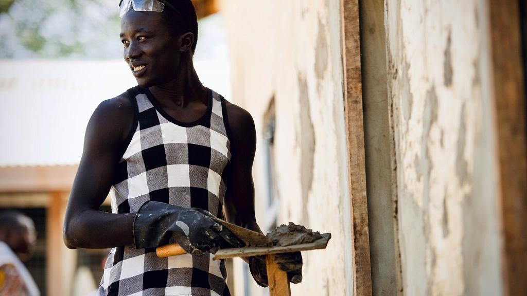 UNMISS engineers work together with their trainees to rebuild a community school in Malakal