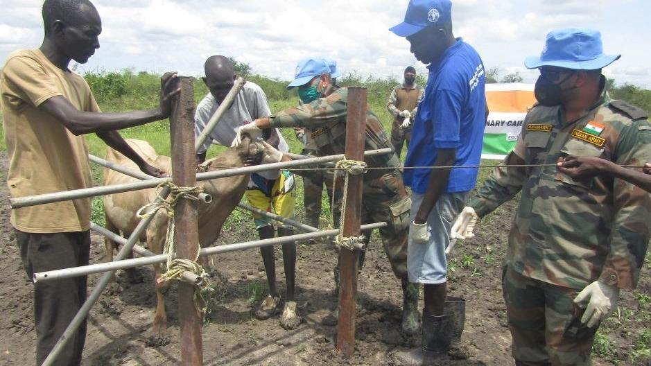 Despite recent conflicts, UNMISS Indian vets visit volatile Pibor to treat sick livestock and train locals