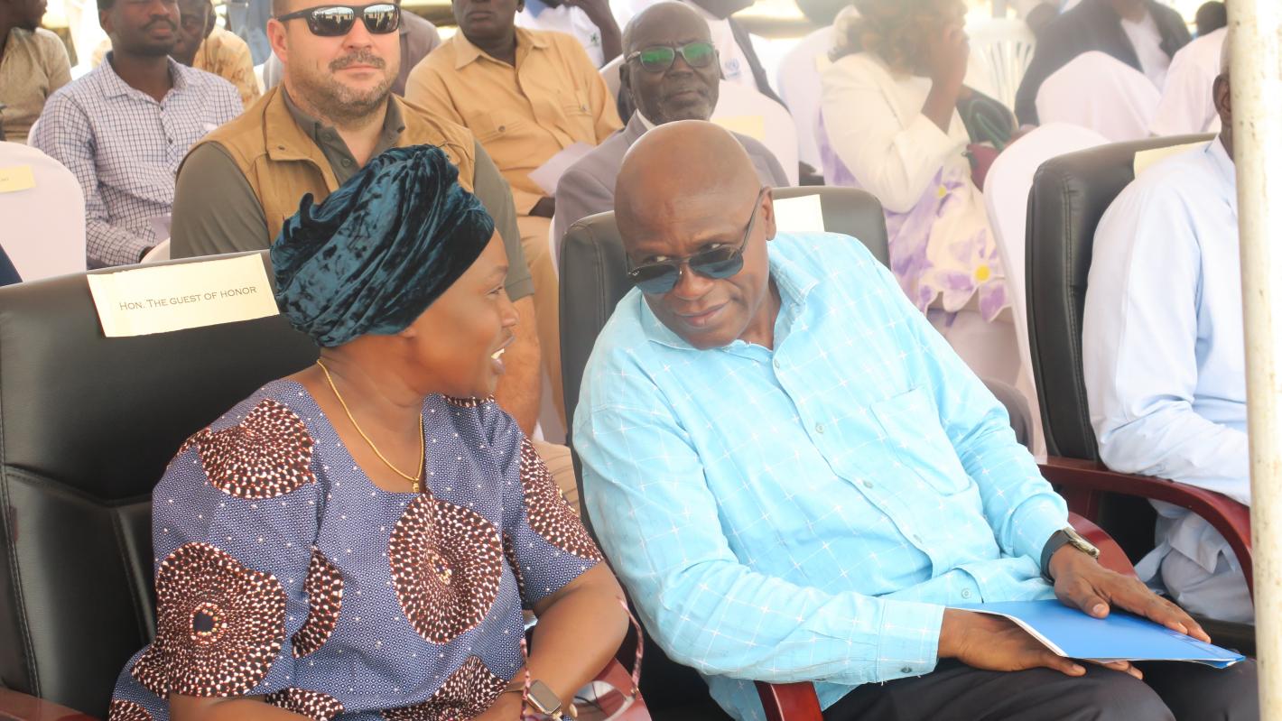 Ms. Angelina Teny, co-chair of the SDSRB confers with deputy head of UNMISS Moustapha Soumaré at a Neighbourhood Advocacy for Peace event in at Juba's Konyo-konyo market. Juba’s Konyo-konyo market was abuzz over the weekend…