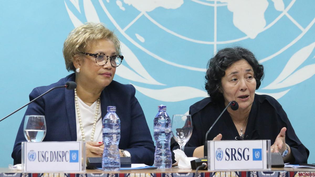 United Nations Under-Secretary-General Catherine Pollard and Head of MONUSCO Leila Zerrougui, speaking with staff of the UN Mission in Kinshasa. Photo MONUSCO / John Bompengo United Nations Under-Secretary-General for…