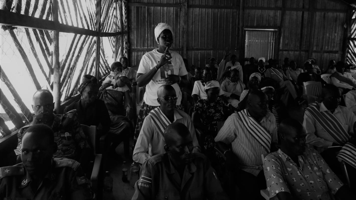 A women's leader speaks during an UNMISS-supported peace conference in Leer. A peace dialogue held between the communities of Mayiendit in Southern Liech and opposition-held Panyinjiar has pacified years of animosity and set…