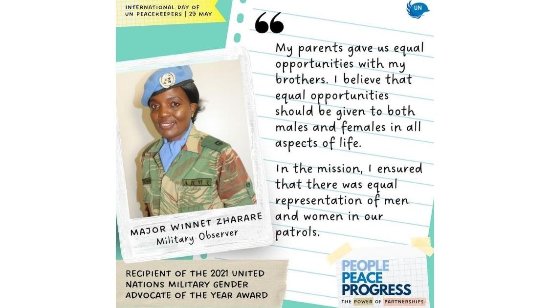Making History: Major Winnet Zharare becomes the first Zimbabwean peacekeeper to receive the United Nations Military Gender Advocate of the Year Award
