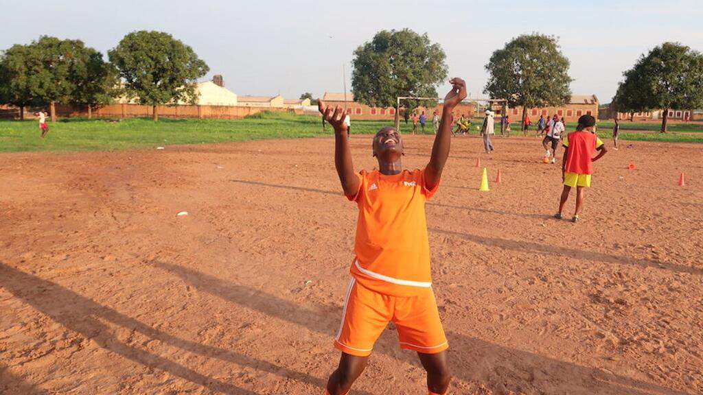 One of the female footballers demonstrating both a new kit and good control of the (also new) ball with her team mates in Wau practicing in the background. Photos: Alahayi Nemaya/UNMISS WESTERN BAHR-EL-GHAZAL: Sports are…