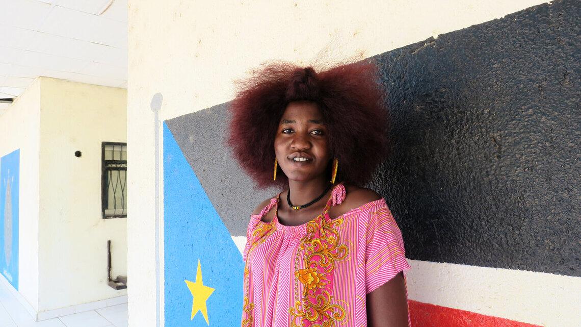 Achol Jock Lul, a singer from Malakal in Upper Nile state, South Sudan, believes that music has the power to unify communities, stop hate and usher in a peaceful, prosperous future in this young nation. Photo by Ines Surwumwe…