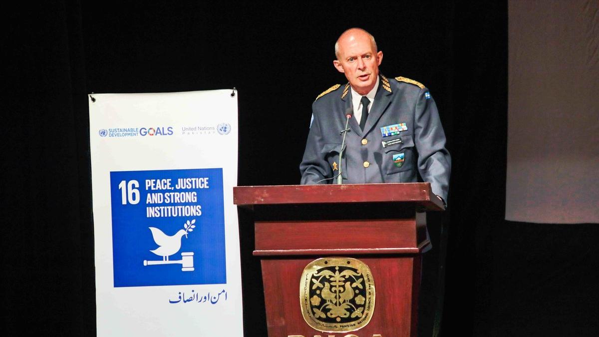 Major General Per Lodin, Head of Mission and Chief Military Observer (CMO), UN Military Observer Group in India and Pakistan’s (UNMOGIP’s) giving opening remarks at screening of documentary ‘A Journey of a Thousand Miles…