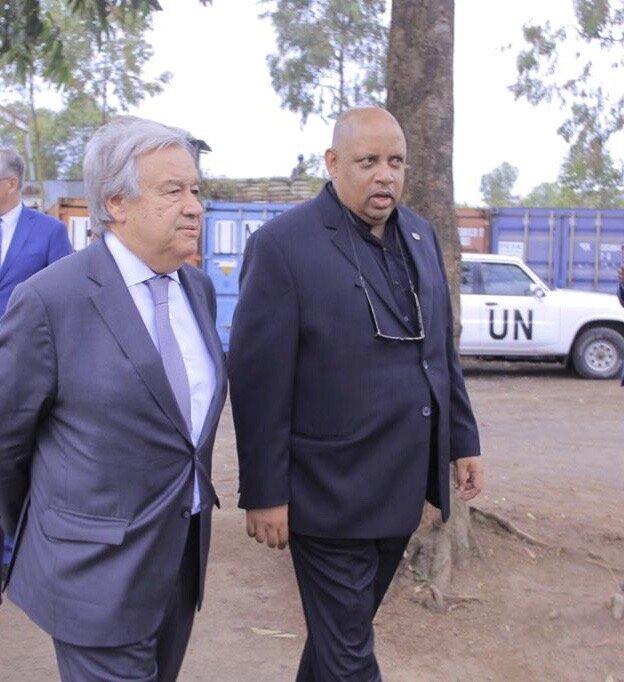 (Bruno Donat, current Chief of the UNMAS Geneva office, with UN Secretary-General António Guterres in Goma during an earlier assignment with MONUSCO. Copyright: UN Photo/Jacques Miroza)