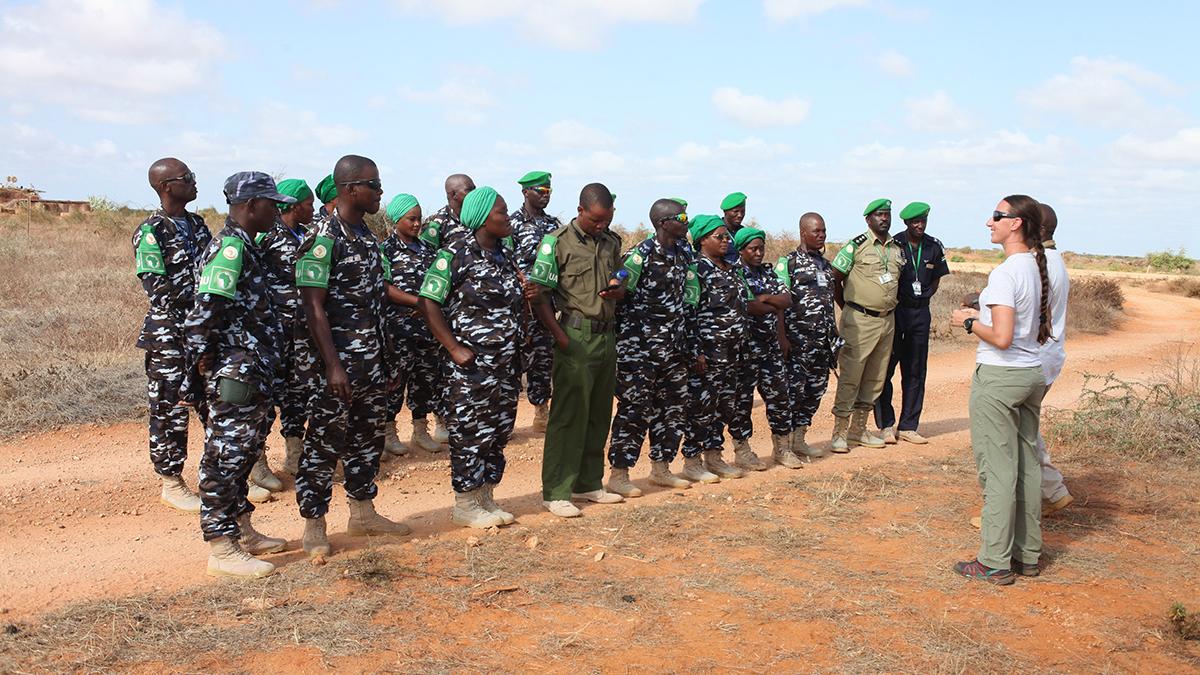 Teaching lifesaving search skills is something Sheree continues to do in Somalia as part of UNMAS support to AMISOM. As a previous searcher, on Operation Herrick 17 in Afghanistan, her students like to hear from her previous military experience.