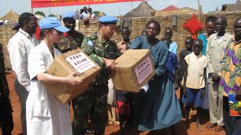In a bid to improve the lives of orphans in Western Bahr El Ghazal State, UNMIS' Chinese medical team donated medicine, stationary and food to Wau's El Shadai Orphanage on 25 May.