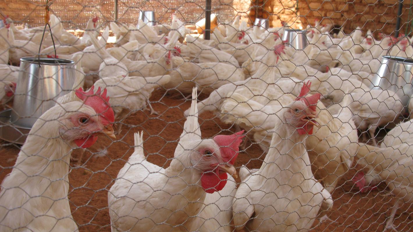 Displaced women raising chickens